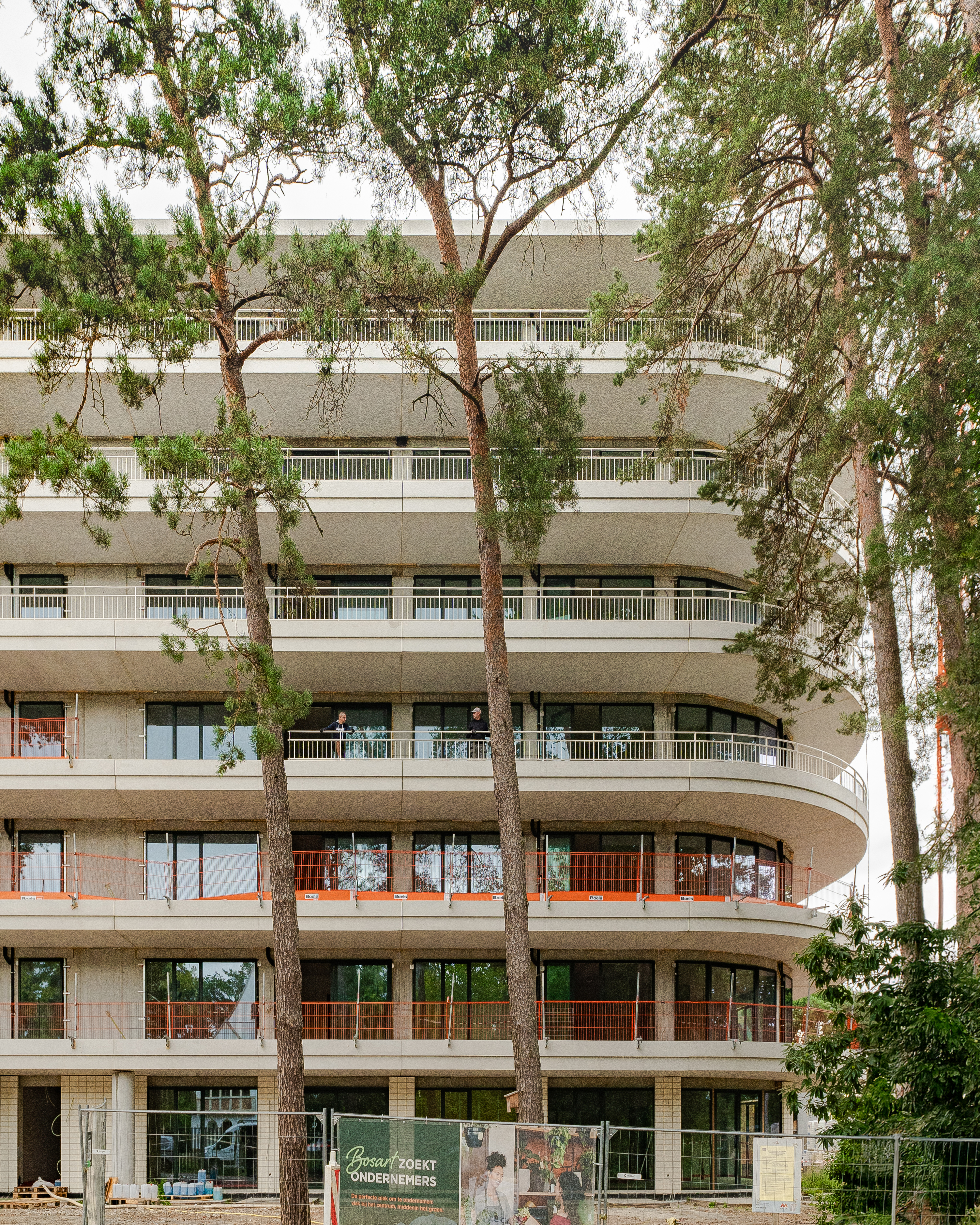 De architectuur van Bosart is opgevat als drie vleugels die samen een elegante S-vorm creëren. Dit ontwerp zorgt voor een optimale bezonning, veel lichtinval en een gevoel van privacy. Grote raampartijen bieden zicht op de bomen rondom, terwijl ruime terrassen bewoners volop laten genieten van de natuur.