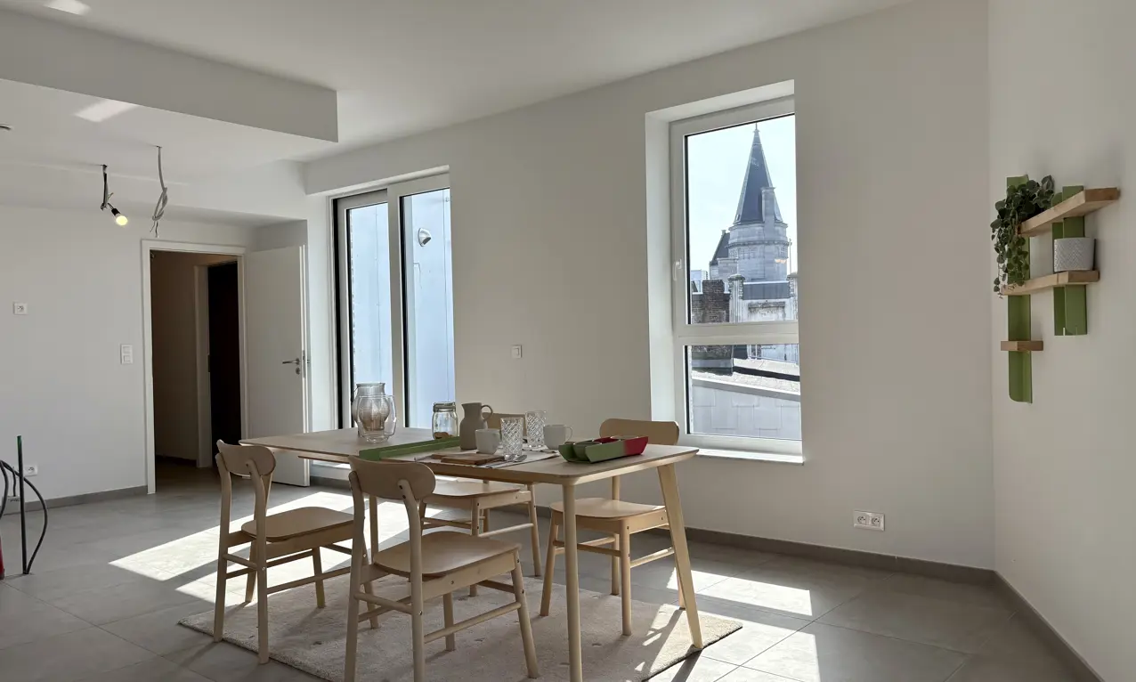 "Pal in het centrum van de bruisende stad én de economische hoofdstad van Wallonië vinden we deze prachtige residentie. De buurt is in volle ontwikkeling en bevindt zich op 300 meter van de place Cathédrale. Ook alle andere commerciële en culturele