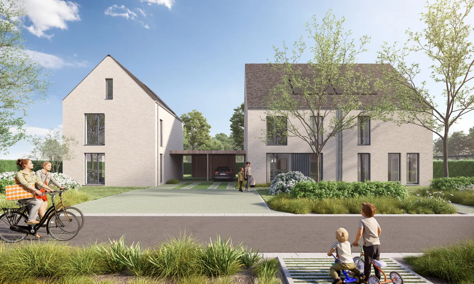 Om duurzame mobiliteit te stimuleren, voorzien we minimaal 2 elektrische deelwagens (met laadpaal) voor de hele buurt. Een écht duurzaam alternatief voor gezinnen die de aankoop van een tweede wagen overwegen. En met de nieuwe wandel- en fietsverbindingen creëren we bovendien meer veiligheid en verkeersluwe woonbuurten.