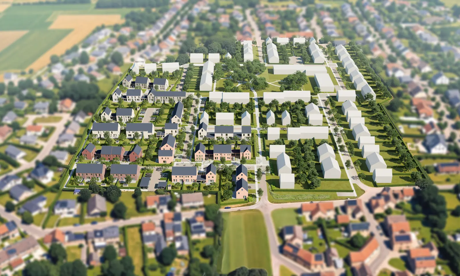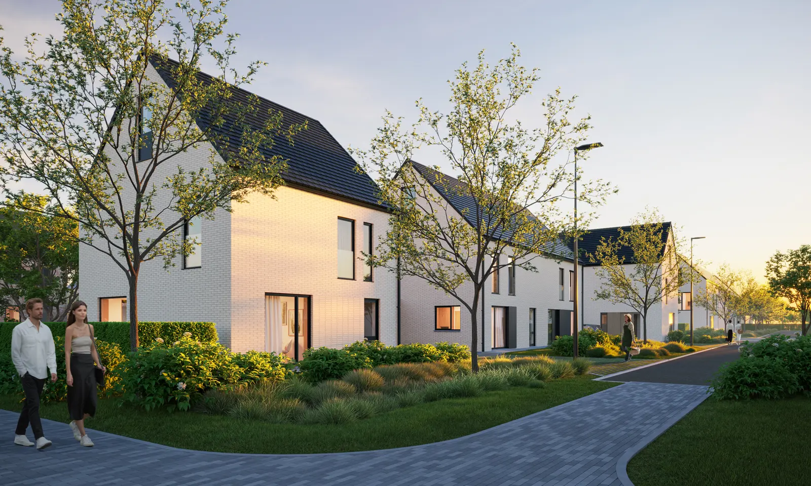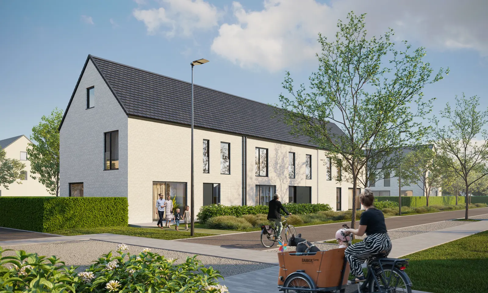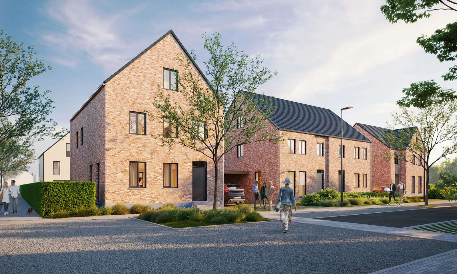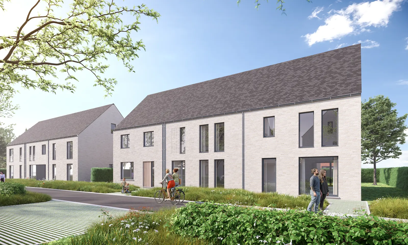 Binnen dat algemene kader hebben bewoners individuele vrijheid, door met de architecturale details te variëren. Ook tussen de individuele woning en de aangrenzende straat of het park voorzien we een samenhang en zachte overgang, door middel van groene voortuinen of natuurlijke hagen. Uiteraard mét privacy in de eigen achtertuin, maar de voortuin moet uitnodigend zijn.