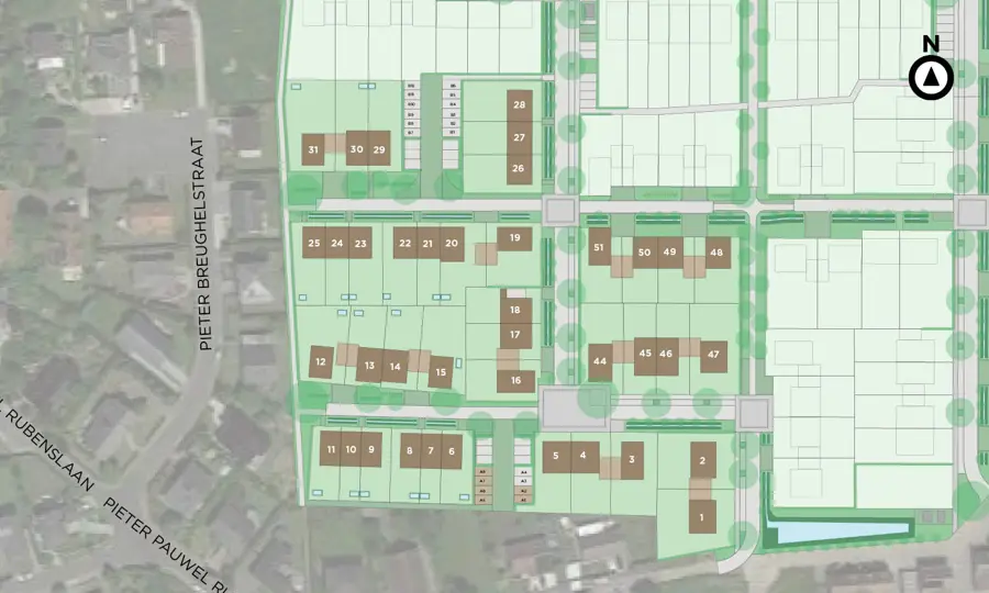 In het kader van dit project zijn onlangs meer dan 80 bomen aangeplant, wat een belangrijke bijdrage levert aan de groene uitstraling van de wijk. De zorgvuldig gekozen boomsoorten zorgen niet alleen voor schaduw en verkoeling tijdens warme zomerdagen, maar zullen ook bijdragen aan de biodiversiteit in de wijk. De bomen zullen in de komende jaren uitgroeien tot volwaardige exemplaren die het landschap van de buurt verder zullen groen & gezellig maken en een thuis bieden aan verschillende vogelsoorten. Met deze groene investering toont Matexi haar engagement voor duurzame en leefbare buurten waar mensen zich thuis voelen in harmonie met de natuur.