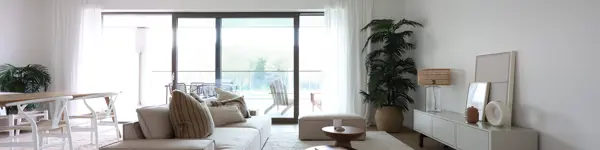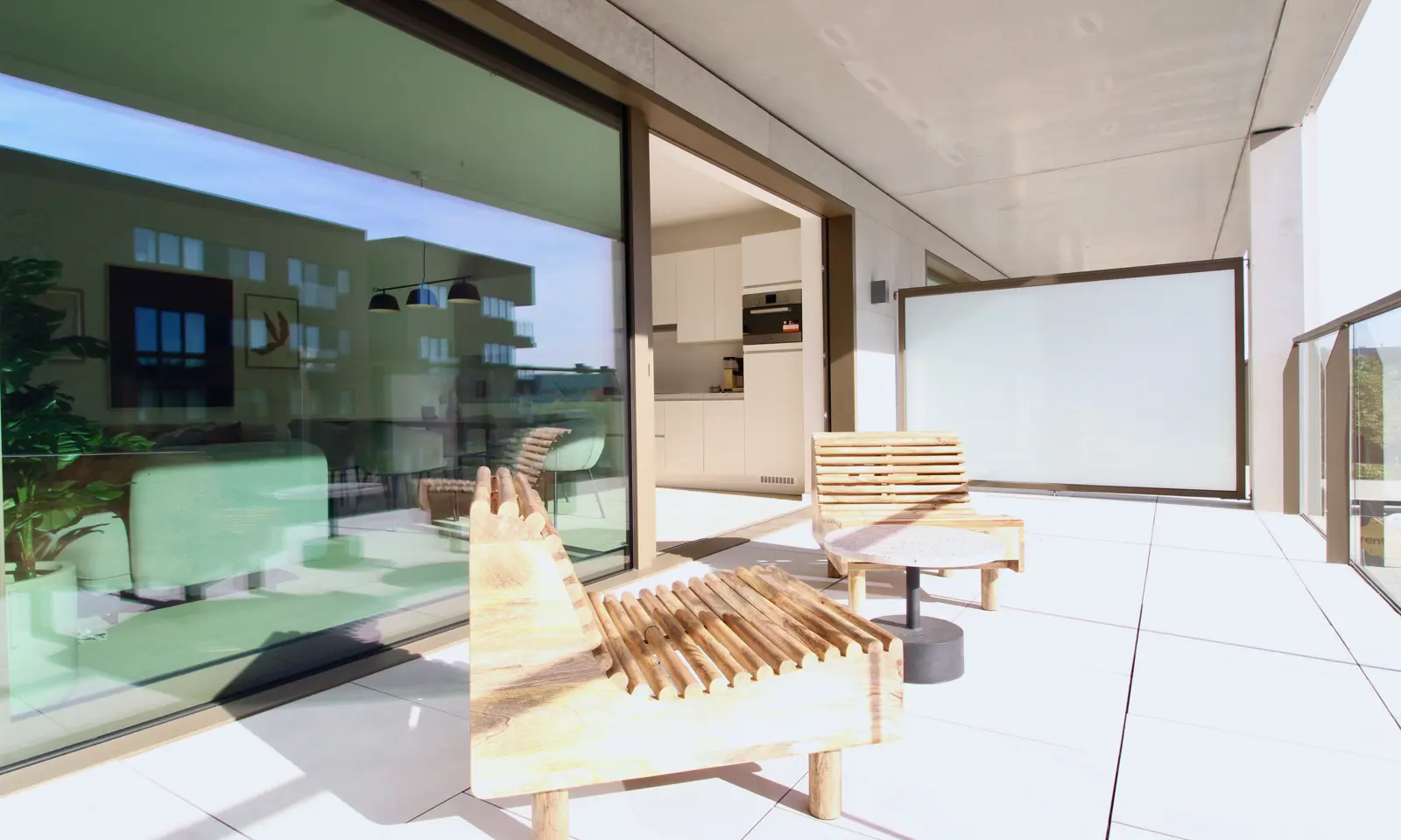 Ruime appartementen met grote glaspartijen en prachtige zichten op de omgeving en binnentuin in een iconische architectuur van Binst Architecture.