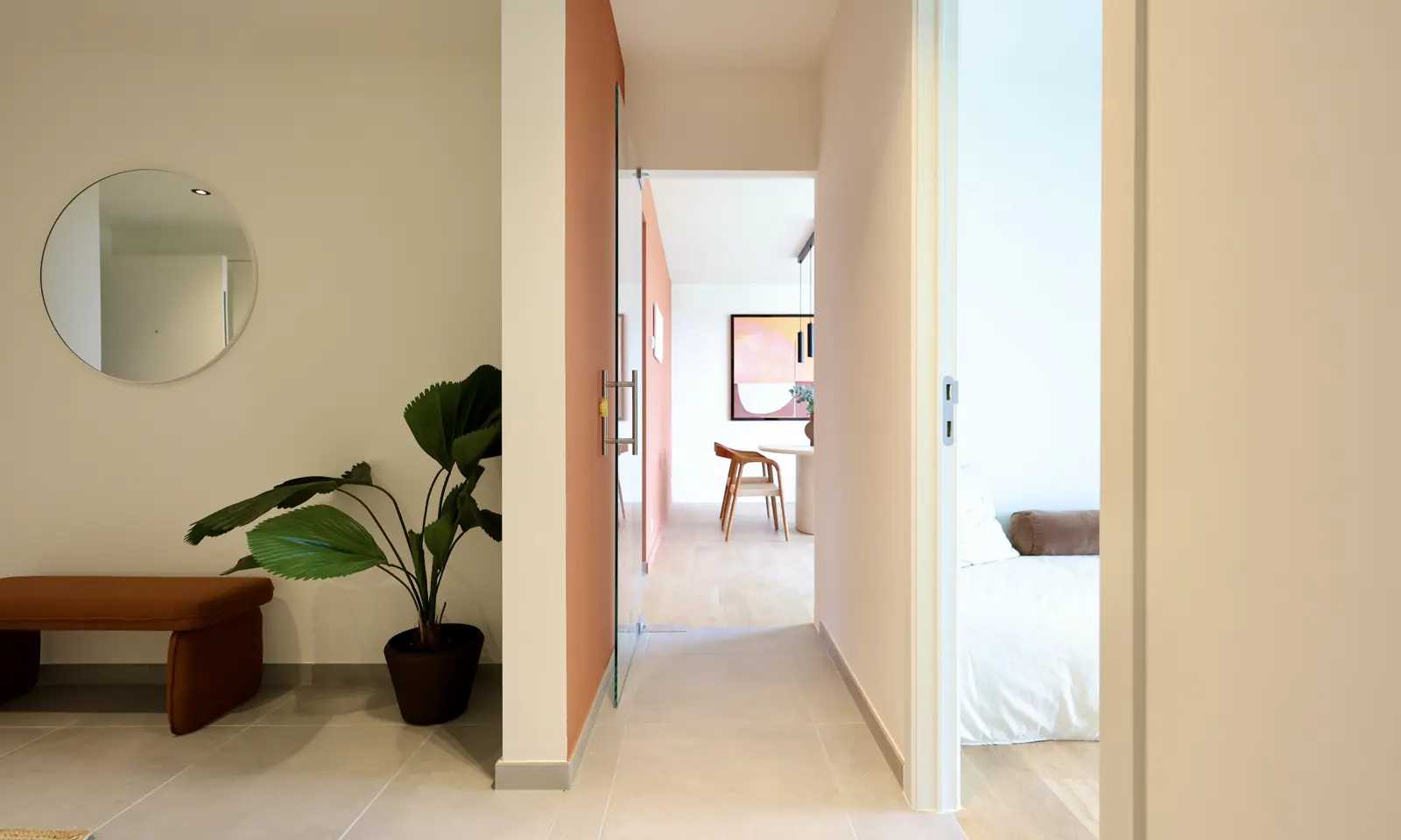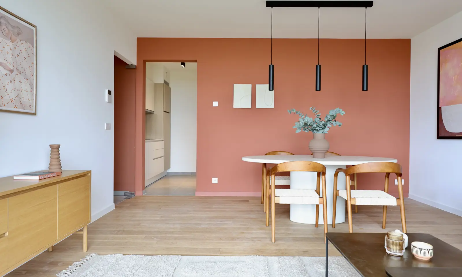 Het kijkappartement beschikt over een lichtrijke leefruimte met open keuken. De afwerking op maat is van onberispelijke kwaliteit.